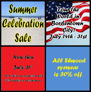 Bordentown Family Eye Care is representing our beloved country, The United States of America for Bordentown City’s “Tour the World” event this month! We are proud to support U.S. made whenever possible. Our Shwood line of eyewear showcases what it means to be American-made: quality, innovation, and attention to design! Come by the office July 14th-31st and enjoy a discount of 30% off the entire line! (Discount can not be used in combination w/ VSP benefits.)